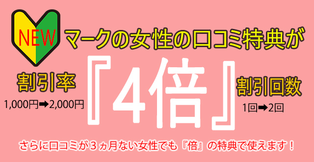 新人女性の口コミの割引コードが破格の「4倍」に♪
